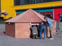 Also, standard plywood comes in the same proportion (8’x4′), and they can be easily combined to make several types of domes, as you can see below. Click here to see how a hexayurt is built. Edmund goes on to talk about the truncated octahedron, and how we can use its shape to design these domes. How amazingly clever!