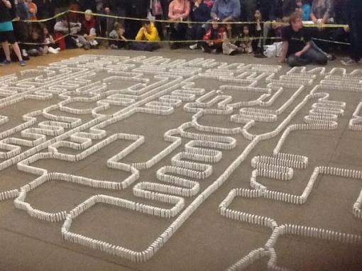 Matt’s Domputer does something very simple: it adds numbers in binary.  But, as you might imagine, it was extremely complicated to build!  According to the Manchester Science Festival Twitter feed, the Domputer used about 10,000 dominoes and would take about 13,600 years to do what a normal processor could do in a second.  Wow!
