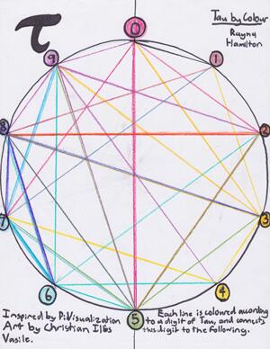 Gallery – Drawings Back to Gallery Home Our first student submission! This drawing of the first fifty digits of tau was made by Rayna Hamilton and was inspired by the work of Cristian Ilies Vasile. Share this: Share on X (Opens in new window) X Share on Facebook (Opens in new window) Facebook Email a link to a friend (Opens in new window) Email Like Loading...
