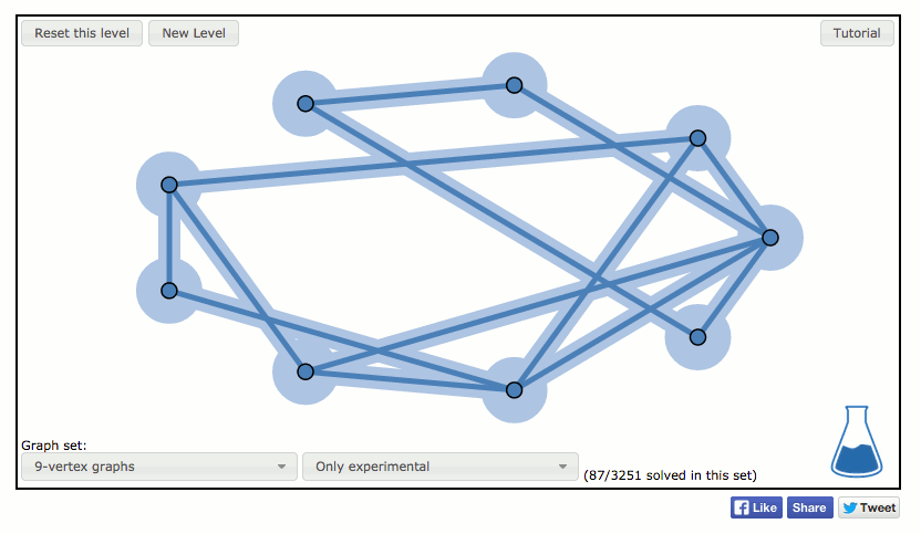 To help push their research further, Chris has made a webgame that takes larger networks and offers them as puzzles to solve. Here’s how I solved one of them: